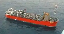 The design and construction of the Schiehallion FPSO vessel was contracted to the Atlantic Frontier Alliance, an ad hoc contracting consortium consisting of Harland and Wolff, SBM Offshore, and Brown and Root.[3] The vessel was designed as a simple barge form, with a 245-metre (804 ft) length similar to a Suezmax tanker. The contract was placed in June 1995. The vessel was constructed at the Harland and Wolff shipyard in Belfast, and handed over to operator BP on 31 December 1997. The vessel has a dead-weight of 154,000 tonnes (152,000 long tons; 170,000 short tons), a processing capacity of 200,000 barrels per day (32,000 m3/d), and a storage capacity of 900,000 barrels (140,000 m3).[2]