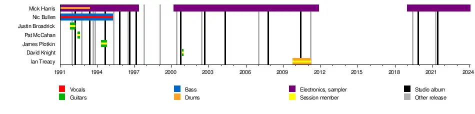 - Nic Bullen - vocals, bass, electronics (1991–1995)