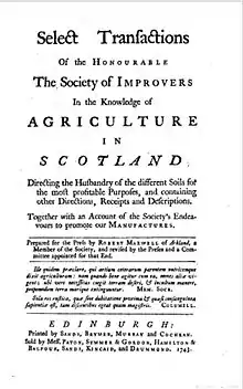 - 1 2 3 4 5 J. D. Mackie, B. Lenman and G. Parker, A History of Scotland (London: Penguin, 1991), ISBN 0140136495, pp. 288–91. Gilles Denis, "Sociétés d'agriculture et diffusion des Lumières" in Frank Salaün and Jean-Pierre Schandeler, Enquête sur le Construction des Lumières (Centre international d'étude du XVIIIe siècle: Ferney-Voltaire, 2018), pp. 108-109.