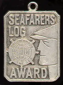 This watch bob references the Seafarers Log, SIU's official organ. The Log is published monthly by Seafarers International Union, Atlantic, Gulf, Lakes and Inland Waters District/NMU, AFL–CIO.