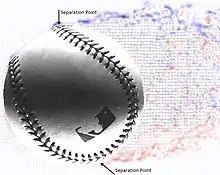 The USU group showed that Major League Baseball (MLB) baseball seams, when in specific locations relative to the direction of the ball, force the boundary layer to separate earlier (closer to the front of the ball) than it normally would. If this occurs on one side of the ball and not on the opposite side, a net force is produced. This force can be similar in magnitude to that caused by spin (i.e. the Magnus effect).[1]