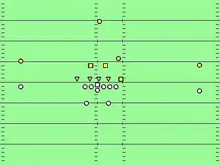 In the modern era, coaches that use this defense include Pete Carroll, Dan Quinn, Gus Bradley and Robert Saleh.[19][20][21][22] At least as early as 2012, Bill Belichick incorporated these fronts as part of his 4-3 hybrid defense.[23] In 2019, Robert Saleh switched the base defense of the San Francisco 49ers from the Seattle front to a wide 9 front, with a Cover 2 back end.[24][25][26]