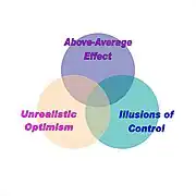 People generally hold unrealistically positive views about themselves. Such flattering views can often be neatly categorised within what has become known as the Triad of Positive Illusions.[95] The three illusions in question are above-average effect,[96] illusions of control,[97] and unrealistic optimism.[98] These illusions can be replicated across many situations and are highly resistant to revision. Rather ironically, when informed of the existence of such illusions, people generally consider themselves to be less prone to them than others.[99]