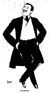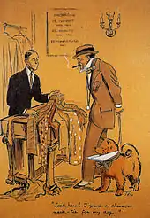 He chose horse racing[i. 3] as a way to enter high society.[16] In June 1900 he self-published his new album Le Turf of caricatures of many prominent Parisian socialites, including Marquess Boni de Castellane, Prince Trubetskoy, Count Clermont-Tonnerre, Baron Alphonse, Gustave de Rothschild, and Polaire.[16] The album's success made him famous overnight.[17] In October 1900 he published the album Paris-Trouville with equal success. Goursat published nine other albums before 1913.[18]