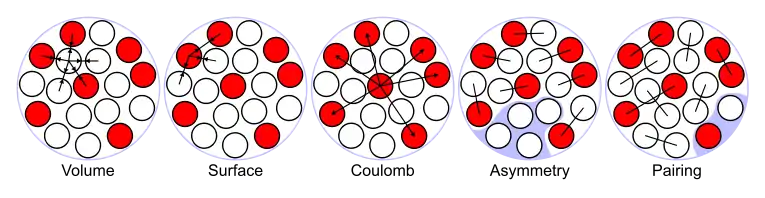 - Pairing energy, which accounts for the tendency of proton pairs and neutron pairs to occur. An even number of particles is more stable than an odd number due to spin coupling.