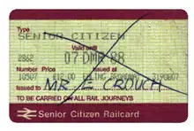 - ↑ "Senior Railcard: Tickets with which you can use your discount". Archived from the original on 3 July 2007.