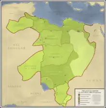 Idris established a tacit alliance with the British, which led to two agreements with the Italian rulers, one of which brought most of inland Cyrenaica under the de facto control of the Senussis.[19] The resulting Accord of al-Rajma, consolidated through further negotiations with the Italians, earned Idris the title of Emir of Cyrenaica, albeit new tensions which compromised that delicate balance emerged shortly after.[20]