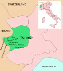 Location of Sestriere in the Metropolitan City of Turin.