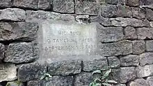 Two plaques at the site read "Hic tuus o Tamesine Pater septemgeminus fons" (Latin for "Here, O Father Thames, is your sevenfold spring").[3] Seven Springs is further from the mouth of the Thames than the medieval preferred source at Thames Head near Kemble.