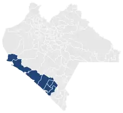 The Seventh District of Chiapas is located in the Soconusco region on the state's Pacific coast. It comprises the municipalities of Acacoyagua, Acapetahua, Arriaga, Escuintla, Mapastepec, Pijijiapan, Tonalá and Villa Comaltitlán.[1]