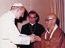 Hagami was the 39th monk in history who completed the ordeal of endurance, perseverance, and both physical and mental strength, known as Sennichi Kaihōgyō in Japanese (千日回峰行), or “thousand-day around-the-peaks training.” He also completed other ordeals such as a thousand days of Unshin Kaihōgyō (運心回峰行) and a thousand days of Hokke Zanmaigyō (法華三昧行).[3] While fostering new generations of Japan for lives of influence and service, Hagami was actively engaged in promoting reconciliation and peaceful coexistence across the world. He appealed to Pope Paul VI and other religious leaders of the world to create an International League of all religious people of the whole world in order to end all the wars among religions as well as all the conflicts caused in the name of religions.[4]