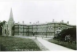 In 1624-40 John Dutton acquired land 2 miles (3.2 km) southwest of the village to create a deer park.[3] He had The Lodge built as a viewing stand to watch deer being coursed by greyhounds.[7] In 1898 it was extended for Susan, Lady Sherborne and converted into a house.[9] The National Trust now owns the Lodge Park and Sherborne Estate.[10] Sherborne House is converted into privately owned apartments and is not open to the public.