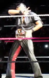 Vividly unrestrained and expressive, Nakamura portrays a wildly random and erratic mixed martial arts enigma, emotionally charged by the sound of violins.[6][7][8] A pre-WWE gimmick, Nakamura played the character in other wrestling companies that he was contracted to prior.[9] Nakamura's wrestling style is not merely gimmick as he has notably competed in mixed martial arts, amassing a 3–1 (1) record.