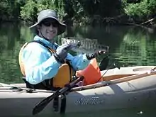 The shoal bass fights harder than its cousin, the largemouth bass, and has more stamina. They prefer moderate to heavy current and will take crawdad patterns aggressively. Five pound shoal bass are considered trophies, but fish above seven pounds are caught each year.