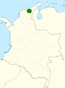 It lives in the undergrowth of humid forests, especially near the edges, at altitudes of 300 to 1,200 metres (980 to 3,940 ft) in the Sierra Nevada de Santa Marta in northern Colombia.[2][3]