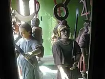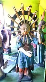 - Saturday: It is a figure that represents Saturn, father of the old gods. For Romans, Saturn was actually Cronos, the titanium Greek refugee in Italy who taught the Romans agriculture and in whose honor is celebrating Saturnalia, when people were fed at state expenses. In the past, Saturn figurine held in his hands a child who he was preparing to swallow, because, according to prophecy, one of his sons would follow to unseat him. His mother, Rhea, managed to rescue Zeus, the youngest son, but when he reached adulthood Cronos ordered him to bring to light his swallowed brothers. The figure is naked to the waist, has blue shirt and red shorts who hangs around the waistband. On his head he has the mark of lead, symbol of stagnation and stop motion. Nobody knows exactly why he has a wooden leg (prosthesis). Perhaps it is a misunderstanding, arising from the fact that in ancient statue legs were wrapped in strips of cloth that were opened only for the holidays. All European languages uses for Saturday an Old Testament term Sabbath. Only English kept the old name linked to Saturn: Saturday.