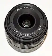 The Sigma 19mm F2.8 EX DN lens is a wide-angle prime lens for Sony E and Micro Four-Thirds mounts, announced by Sigma in January 2012. Along with the Sigma 30mm F2.8 EX DN, it was part of the first release of Sigma lenses for compact interchangeable lens cameras, and hence the inception of the "DN" line, created by Sigma to cater to these cameras,[1] an offering that in January 2013 was expanded with another lens, the Sigma 60mm f/2.8 DN Art.[2]
