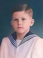 Simeon was born to Boris III of Bulgaria and Giovanna of Italy. Following his birth, Boris III sent an air force officer to the Jordan River to obtain water for Simeon's baptism in the Orthodox faith.[3] He was pointed to accede to the throne on 28 August 1943 upon the death of his father, who had just returned to Bulgaria from a meeting with Adolf Hitler.[4][5] Since Simeon was only six years old, his uncle Prince Kiril, Prime Minister Bogdan Filov, and Lt. General Nikola Mihov of the Bulgarian Army were appointed regents.[6]
