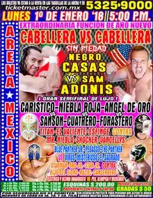 - ↑ Quezada Monter, Roberto (January 2, 2018). "Negro Casas arranca el año rapando a Sam Adons". Esto (in Spanish). Retrieved September 21, 2018.