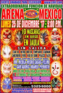 - ↑ VideosOficialesCMLL (December 25, 2017). Lucha Libre 10 Mascaras en juego lucha en jaula lunes december 25 de Deciembre del 2017 Funcion Completa. Consejo Mundial de Lucha Libre. Retrieved October 5, 2018.
