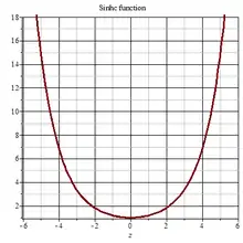 In mathematics, the sinhc function appears frequently in papers about optical scattering,[1] and hyperbolic geometry.[2] For , it is defined as[3][4]