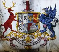Arms of Pole of Shute: Azure semée of fleur-de-lys or, a lion rampant argent[4]