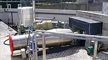 Static testing of the engine precooler began in June 2011, marking the start of Phase 3 in the Skylon development programme,[25][46][47] In April 2012, Reaction announced that the first series of the precooler test programme had been successfully completed.[48] On 10 July 2012, Reaction announced that the second of three series of tests has been completed successfully, and the final series of tests would begin the following month after the testing facilities had been upgraded to allow testing of −150 °C (−238 °F) temperatures.[49][50] ESA's propulsion division audited the precooler tests during mid-2012 and found the results satisfactory.[9][51]