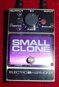 The Small Clone chorus is a very popular chorus pedal, used by Kurt Cobain, both live and in studio.[7] Like the Small Stone, it is issued in both the standard size and two different smaller versions (the Nano Clone is based on the Clone Theory circuit, while the neo clone is the standard).