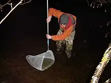 In the Canadian provinces and U.S. states around the Great Lakes, "smelt dipping" is a common group sport in the early spring and when stream waters reach around 4 °C (39 °F). Fish are spotted using a flashlight or headlamp and scooped out of the water using a dip net made of nylon or metal mesh. The smelt are cleaned by removing the head and the entrails. Fins, scales, and bones of all but the largest of smelts are cooked without removal.[4]