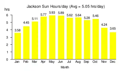 Mississippi has substantial potential for solar power, though it remains an underutilized generation method. The rate of installations has increased in recent years, reaching 438 MW of installed capacity in early 2023, ranking 36th among the states.[1] Rooftop photovoltaics could provide 31.2% of all electricity used in Mississippi from 11,700 MW if solar panels were installed on every available roof.[2]