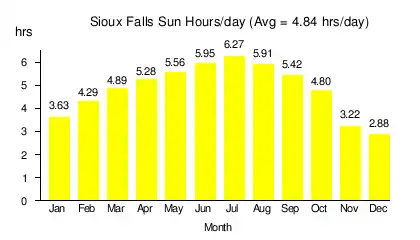 Solar power in South Dakota has high potential but little practical application. The state ranked 50th among U.S. states in installed solar polar in 2015 with no utility-scale or large commercial systems.[1] Photovoltaic panels on rooftops can provide 38.7% of all electricity used in South Dakota using 3,800 MW of solar panels.[2] The state is ranked 14th in the country in solar power potential, and 4th in wind potential.[3]
