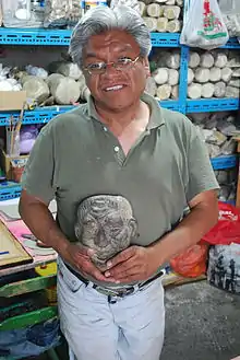 Sotero Lemus Gervacio is a cartonería artisan who is known for his traditional toymaking and large figures. Although situated in the Mexico City metro area, Lemus' work and style is based on the cartonería traditions of Celaya, Guanajuato. He is a fourth-generation "cartonero," from a family who is noted in Celaya for its work. Lemus' work has been sold and exhibited in various parts of the world, including the United States, Europe and Central America. Since 2005, he has also been involved in the making of much larger works for exhibition, starting with a twelve-meter tall image of Don Quixote on horseback, which toured Mexico for about a year.