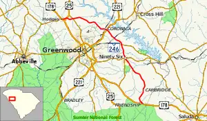 South Carolina Highway 246 (SC 246) is a 28.700-mile (46.188 km) primary state highway in the U.S. state of South Carolina. It connects the communities and towns in eastern Greenwood County.