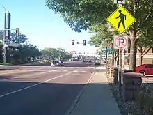 South Dakota Highway 115 begins at an intersection with US 18 west of Canton and heads due north through rural Lincoln County. The highway runs just east of Worthing and about a mile west of Harrisburg, South Dakota. Three miles north of the Harrisburg intersection, SD 115 intersects 85th Street and enters Sioux Falls from the south. It runs along Minnesota Avenue in the southern portion of Sioux Falls and enters Minnehaha County upon crossing 57th Street. Just south of 41st Street, SD 115 meets Interstate 229. SD 115 travels farther north through the downtown section of Sioux Falls, meeting SD 42 eastbound at 11th Street and westbound at 10th Street. North of downtown Sioux Falls, the route turns east on Benson Road, then north again on Cliff Avenue. It then meets Interstate 90 just before exiting Sioux Falls.[1]