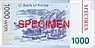 - 1 2 "Brief History of current Korea notes in circulation; 1,000 won note". Bank of Korea. Archived from the original (Flash and HTML) on 2007-09-27. Retrieved 2006-11-09.