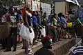 Lobé, only a few kilometres south of Kribi, is another popular spot with tourists due to its even more isolated beaches and the picturesque Lobé Falls (chutes de Lobé), found where the Lobé River empties into the Atlantic. Local artists and vendors frequent the area around the falls, as do drivers offering to take passengers to Kribi or 65 km further south to see the Lala Pygmy village Elogbatindi, .