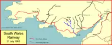 The South Wales Railway system at amalgamation with the GWR in 1863