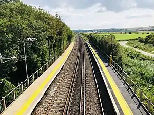 Southease railway station is located 0.5 miles (800 m) east of the village of Southease in East Sussex, England. It is on the Seaford branch of the East Coastway Line, 53 miles 40 chains (86.1 km) measured from London Bridge via Redhill.[1] The station is surrounded by agricultural land. The South Downs Way crosses the Seaford Branch here.