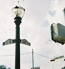 A Southside Place street sign and street light