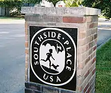 A sign with Southside Place's logo