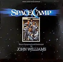 The soundtrack to SpaceCamp is a release of the film's musical score by John Williams, first released on 45 and LP in 1986, and reissued on CD in 1992 and again in 2010.[1] Although originally released on LP in the United States in 1986 by RCA Victor, it was withdrawn from the market because of the film’s unintentional similarities to the Challenger accident that had happened the same year. RCA Records’ German LP release and Japanese 45 release were not likewise affected. A limited Japanese printing of 1000 CDs was re-released in 1992, and the Intrada Special Collection limited a CD printing to 3000 copies in 2010.[2] Intrada Records released a 2-disk remastered and expanded soundtrack in May 2022, containing both the complete score from the film and the original soundtrack album.