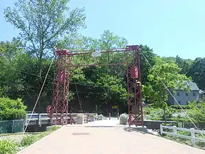 The Sparkill Creek Drawbridge is a historic Pratt Pony Truss drawbridge located at Piermont in Rockland County, New York. It was built in 1880 by the King Iron Bridge Company of Cleveland, Ohio, and is a single-leaf movable metal bridge. Chains can lift the bridge when an operator turns a crank, helped by counterweights. It spans Sparkill Creek, a tributary of the Hudson River.[2]