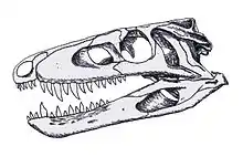 Sideview of Sphenosuchus acutes skull as portrayed by the South African Museum