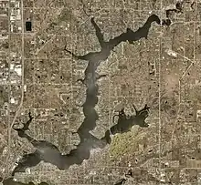 Within the Township of Spring Lake, is a 1,097-acre (444 ha) lake called Spring Lake.[3] This lake is roughly 4 miles long, not including its various bayous, and ~200 feet wide before it drains into the final stretches of the Grand River.