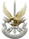The Special Forces Regiment cap badge depicts an Eagle and has been regarded as a symbol of the SF along with the black-colored beret and the Jolly Roger skull-and-crossed-bones arm patch with the "Special Forces" shoulder tab.[2]
