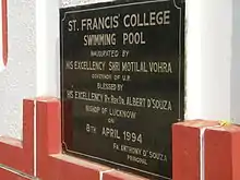 [File:Sfcpool.jpg|thumb|The college swimming pool inaugural stone]