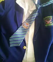 The uniform comprises a white shirt and light grey trousers (shorts for students till Class IV) and black Oxfords along with the college tie and belt marked with navy blue, dark green and white stripes. This is accompanied by navy blue jumpers and blazer in winter, with dark grey woolen trousers. On Saturdays a house coloured shirt with monogram is compulsory.