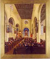 The building was supervised by Bauinspektor Julius Manger, who was long regarded as the architect. The church was consecrated on 21 November 1848. The first interior design was probably by Manger.[2]