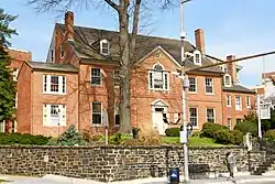 Situated a block to the west, the House was originally built for the Rev. Dr. William West, rector of the church since June 7, 1779, and a friend and former neighbor of George Washington, at Mount Vernon, Virginia, but was completed after his death, March 30, 1791 and he never occupied it.[2] After a lottery was held beginning in April 1788, "for the purpose of building a parsonage for the minister of the Protestant Episcopal congregation in Baltimore Town", 3,000 tickets were sold at $2.00 each, with prizes of $4,000 total, leaving $2,000 for the construction of the house. The managers of the lottery were: John Moale, John Merryman, Andrew T. Ennals, John Eager Howard, John Weatherburn, John Hammond, George Grundy, Dr. Darling, James Calhoun (first mayor of Baltimore Town since 1794, then City after 1797 to 1804), Englehard Yeider, George P. Keeports, William Gibson, William McCreery, Thomas Hollingsworth, and Andrew Buchanan - all prominent citizens in the early years of the burgeoning town.