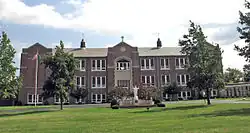 The current campus is one building in three parts. The science wing, which also includes the music room, chapel, and multipurpose room, is on the south side. A glass hallway separates it from the main building, which contains the majority of the classrooms and offices. The athletic wing, including the Joe Venturi gymnasium, locker rooms, weight room, and a few classrooms, is on the north side. To the east of the school are the football field, (doubling as a soccer pitch), track, press box, and baseball diamond. The softball diamond is to the south of the school. Students must remain on campus throughout the school day.